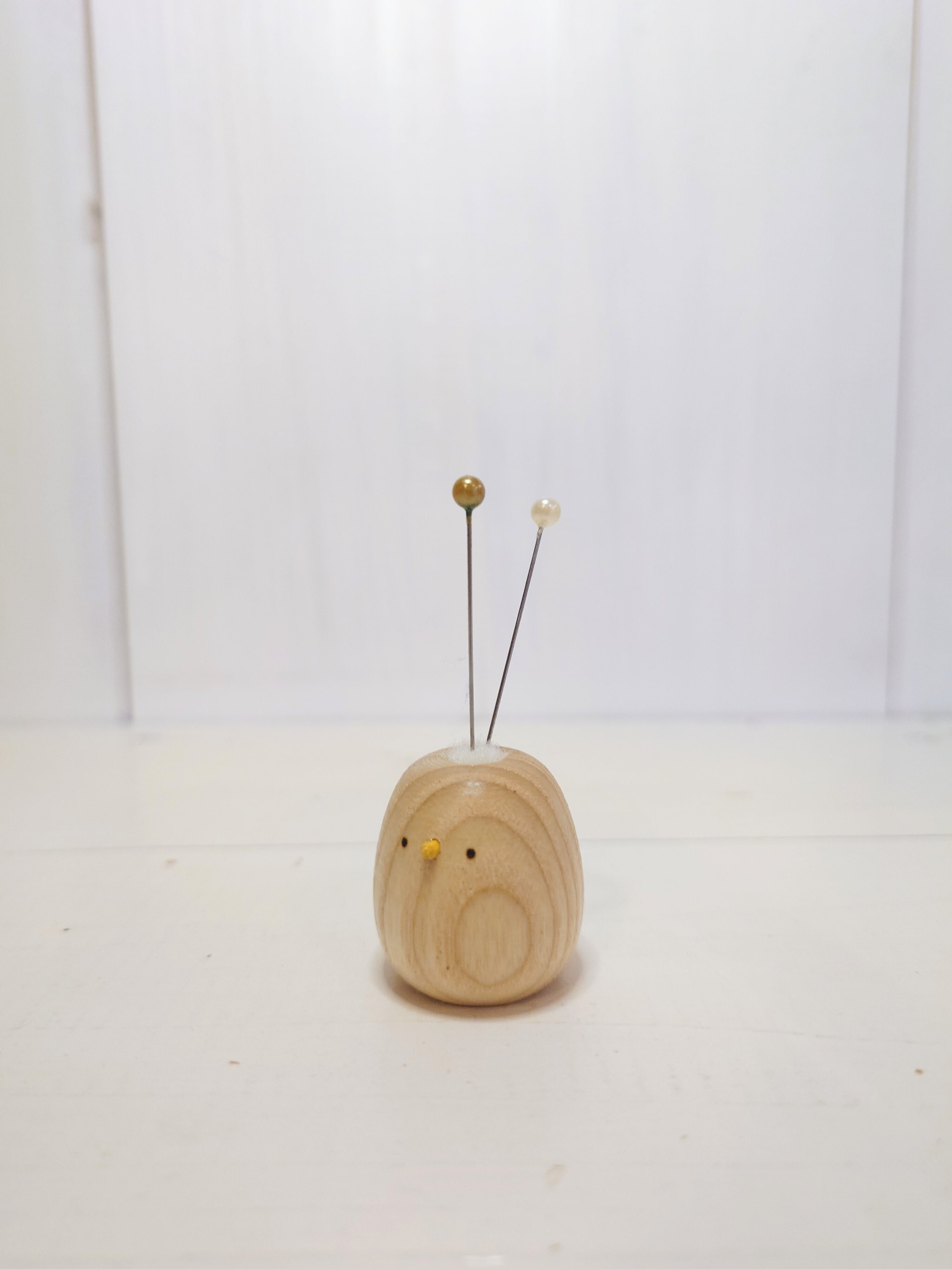 灰緑色で落ち着いた色調の朴(ほお)の木を使用したピンクッション(針山)です。