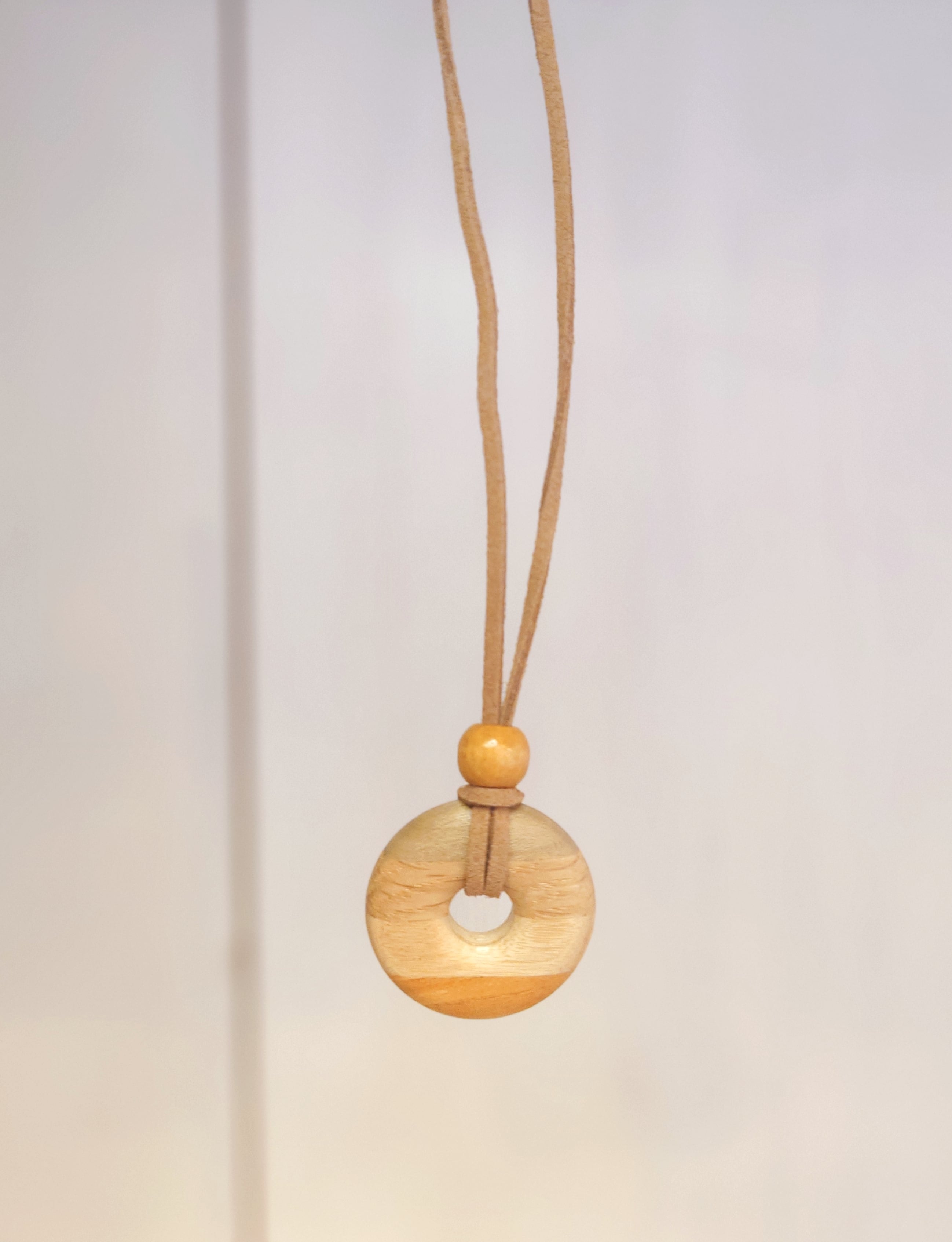 4種類の木材を寄せ木にして丸いドーナツ型に加工しました。