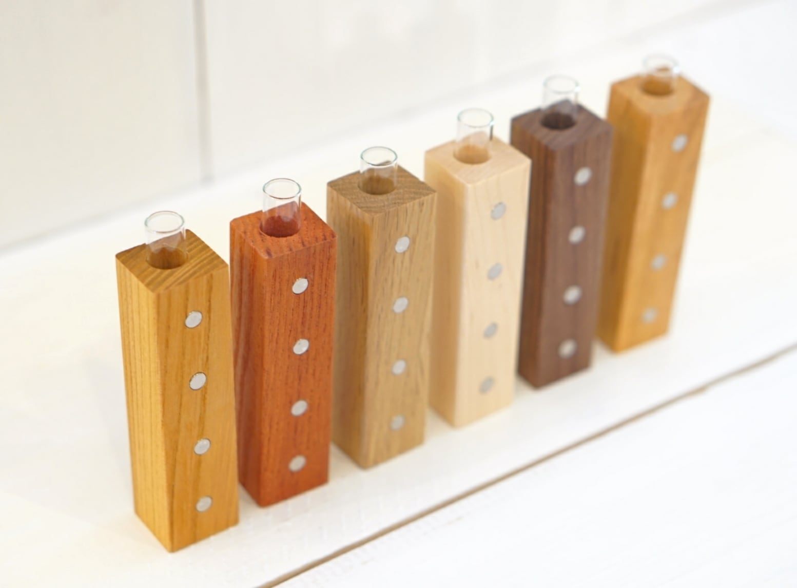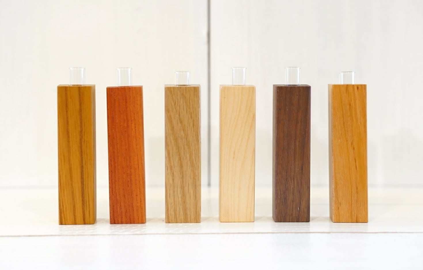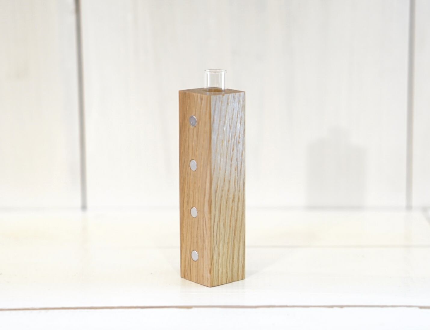 淡い褐色の重硬なナラを使用した一輪挿しです。